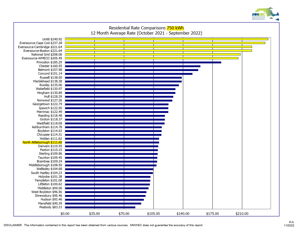 Cheaper electricity for your business is in North Attleboro. The Town of North Attleboro provides its own electric power. Electric service is provided by the North Attleboro Electric Department (NAED). With public power, residents are part-owners of their local electric utility and is a non-profit and tax-exempt, meaning that every dollar paid for electricity goes toward high-quality, reliable, and economical electric service. NAED typically offers lower rates than National Grid and Eversource. The September 2022 commercial rate comparison and the residential rate comparisons can be found in the images below. Electric service for your business can be cheaper in North Attleboro. Other benefits to our own municipal electric service: